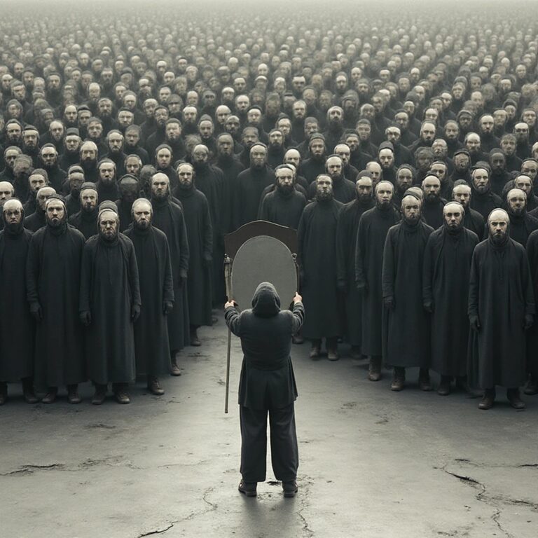 تصور کنید در میدانی عظیم ایستاده‌اید. در مقابل شما، ارتشی بی‌پایان از سربازان هم‌لباس، هم‌صدا، و هم‌فکر قرار دارد. همه و همه، با چهره‌هایی بی‌حال و چشمانی خالی، به شما خیره شده‌اند. هیچ کس سؤال نمی‌کند. هیچ کس نگاه نمی‌کند. هیچ کس فکر نمی‌کند. تنها شما، با تمام وجودتان، در برابر این ارتش ایستاده‌اید. تنها شما، با تمام وجودتان، در برابر این سیستم مقدس ایستاده‌اید. این، جهان “تضاد فرد و جمع” است—جهانی که در آن، فرد نه به عنوان یک شهروند، که به عنوان یک دشمن سیستم مقدس شناخته می‌شود. و تنها راه نجات، قیام تنهاست.