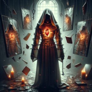 آن زنان، صدا را در خود میبلعیدند — یعنی هر سؤالی که میتوانست آنها را به خود بازگرداند، سرکوب شده بود. آنها نگاه را به خود میخواندند — یعنی دیگر نمیتوانستند خود را ببینند. و وردها را زیر لب میخواندند — یعنی به جای اینکه به محتوای مقدس بپردازند، به تکرار نامهایشان پرداختند.