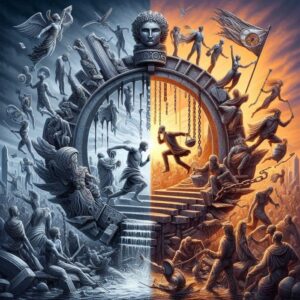ریشه بسیاری از این برساختهای اساسی انسان اغلب در یک تناقض بنیادین به نظر میرسد. از یک سو، یک میل اولیه غیرقابل انکار برای امنیت، برای درک هرج و مرج گیجکننده جهان طبیعی، و برای یافتن معنا در کیهانی بیتفاوت وجود دارد. این آسیبپذیری ذاتی انسان – جهل عمیق ما در مواجهه با پدیدههای طبیعی، درماندگی وحشتناک ما در برابر نیروهای غالب، و شکنندگی ذاتیمان – مکرراً ما را به سمت اختراع قدرتها، نیروها یا موجودیتهای بیرونی سوق میدهد که قادر به ارائه تسکین، توضیح، و حس کنترل هستند. برساخت یک خدای متعال، به عنوان مثال، اغلب از این چشمه اولیه ترس و جهل سرچشمه میگیرد و یک داور همهچیزدان و همهتوان را ارائه میدهد که میتوان نگرانیها را به او سپرد و از او حس هدفمندی گرفت. این عمل اولیه مفهومسازی، اگرچه ظاهراً از نیاز مبرم به آرامش روانی زاده شده، به ناچار آبشار دیگری از ساختارها را به حرکت درمیآورد که از دکترین و مناسک مذهبی تا سلسلهمراتب اجتماعی پیچیده و کدهای اخلاقی را شامل میشود که هر یک برای تقویت مشروعیت و اقتدار آن داستان اولیه و آرامشبخش طراحی شدهاند.