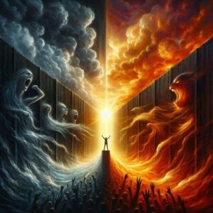نیما، در این شعر، یک سؤالِ عمیق‌تر را مطرح می‌کند: چرا ما، نمی‌توانیم خدا را بدون خشونت تصور کنیم؟ چرا هر نمادِ الهی، همیشه با یک تهدید همراه است؟ چرا هر دین، همیشه با یک تنبیه همراه است؟ پاسخ، در خودِ ساختارِ دین است. دین، از ابتدا، نه برای آزادی، بلکه برای کنترل خلق شده است. و کنترل، بدون ترس، ممکن نیست. و ترس، بدون خشونت، نمی‌تواند تحقق یابد. بنابراین، خدا، در دین، همیشه یک موجودِ ترسناک است. یک موجود که می‌تواند نجات دهد — ولی اگر نجات ندهد، می‌تواند تخریب کند. این دوگانگی، همان است که دین را به یک ابزارِ کنترل تبدیل می‌کند. و وقتی ما این دوگانگی را می‌پذیریم، ما، خودمان، همچنان در دامِ خشونت می‌مانیم.