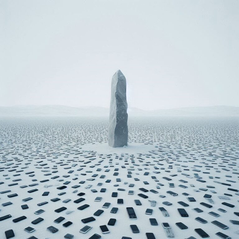 در یک اتاق خالی، یک ستون سنگی ساده ایستاده بود. هیچ نقوشی بر روی آن نبود، هیچ شعاری بر روی آن نمیخواندند، هیچ محرابی به سمت آن ندارند. اطرافش، میلیونها تلفن هوشمند قرار داشتند — هر کدام، صفحهای روشن و پر از نور. بر روی صفحات، جملاتی میدرخشیدند: «خدایا، من را نجات بده.» «اللهاکبر.» «خداوند من، نور است.» «خدا نیست.» «خدا یک افسانه است.» «خدا، تصور ما است.» «خدا، محصول فرهنگ است.» هر کلمه، یک نظریهٔ جدید؛ هر نور، یک اعتقادِ تازه. ولی هیچکدام از این صفحات، به ستون سنگی نگاه نمیکردند. هیچکس، آن را لمس نمیکرد. هیچکس، به آن نماز نمیخواند. هیچکس، به آن سجده نمیکرد. فقط یک تلفن، در گوشهٔ اتاق، نورش کمتر بود. صفحهٔ آن، خالی بود. فقط یک کاراکتر تکرار میشد: ?