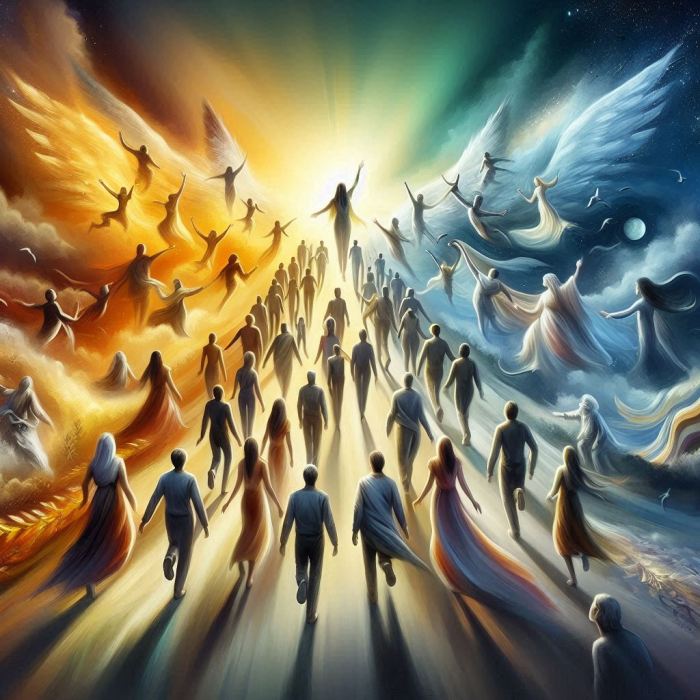 انسانها، با توجه به جایگاه و قدرتی که دارند، الگویی از خدا در آسمانها میگیرند. این الگوگیری، در قالبهای مختلفی ظاهر میشود: یک بار در مقیاس بزرگ، تحت عنوان رهبری که سرنوشت میلیونها انسان را در دست دارد؛ یک بار در مقیاس کوچک، در کنار دوست یا همکاری که از او ضعیفتر است.