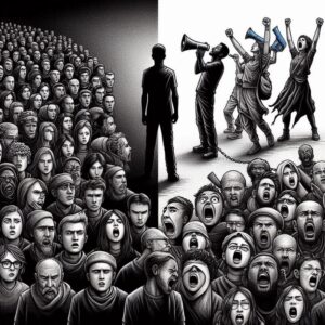 در تمامی این ساختارها، نقش “مردم” همواره یک معضل کلیدی بوده است. مردم اغلب به مثابه “ملتی بیصدا” یا “رعیتی منفعل” تصویر میشوند که باید مطیعانه اوامر “والی بزرگ” یا “رهبر فرزانه” را پذیرا باشند. فرهنگ “اطاعت و فرمانبرداری”، که اغلب ریشههای عمیقی در باورهای دینی یا سنتهای تاریخی دارد، توسط حاکمیت تقویت میشود تا تودهها را به “بنده” و “عبد” تبدیل کند. این تصویرسازی غیرواقعی از مردم، که آنان را یکپارچه و همسو با آرمانهای حاکمیت نشان میدهد، هرگونه تنوع قومی، فکری، دینی و سیاسی را نفی میکند و هویتهای واقعی و متکثر جامعه را لگدمال میسازد. در نتیجه، مردم به هویتهای پنهان و موازی روی میآورند و در برابر حکومت، در حالت مقاومت خاموش یا آشکار قرار میگیرند. این انفعال تحمیلی و فقر مشارکت، نه تنها مردم را از سرنوشت خود دور میسازد، بلکه بار این نارضایتی را انباشته میکند تا سرانجام در لحظهای انفجاری، به شکلی مخرب و اغلب بیهدف، خود را آزاد کند، و جامعه را به چرخهای دیگر از استبداد، اما این بار با “لباسی تازه”، بیندازد.